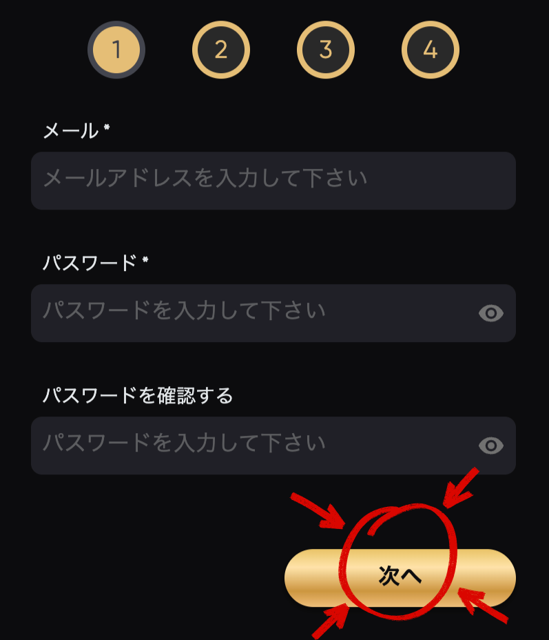 - メールアドレスを入力
