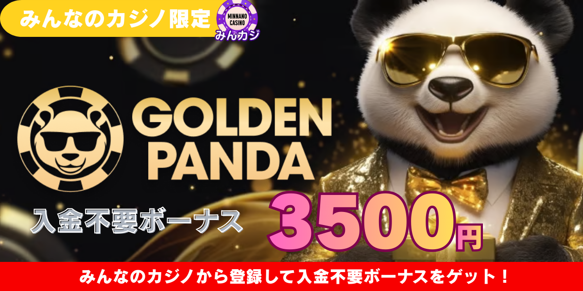 このページでは、みんカジから経由した場合のみもらえる【みんカジ限定】ゴールデンパンダ3500円入金不要ボーナスについて詳しく解説しています。- 登録方法から取得方法まで