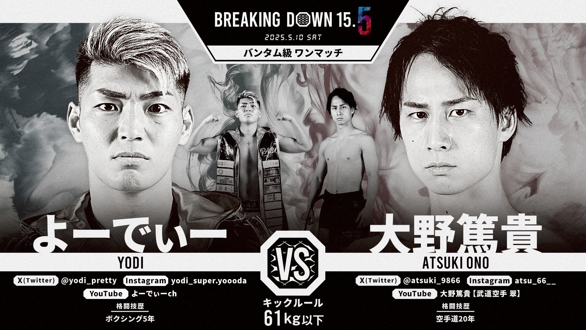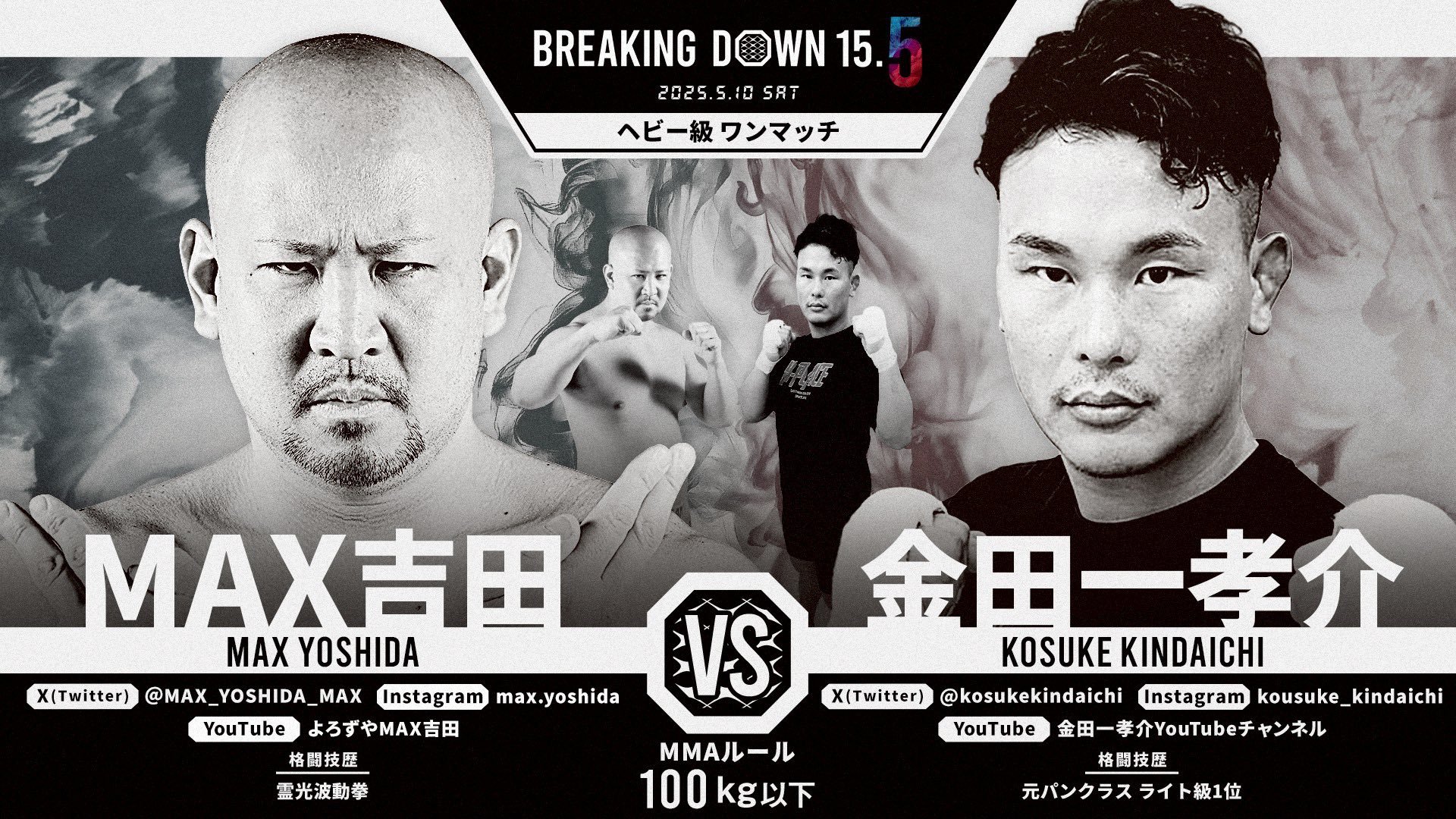 BreakingDown15.5(ブレイキングダウン15.5)の開催日は5月10日(土)となっています。