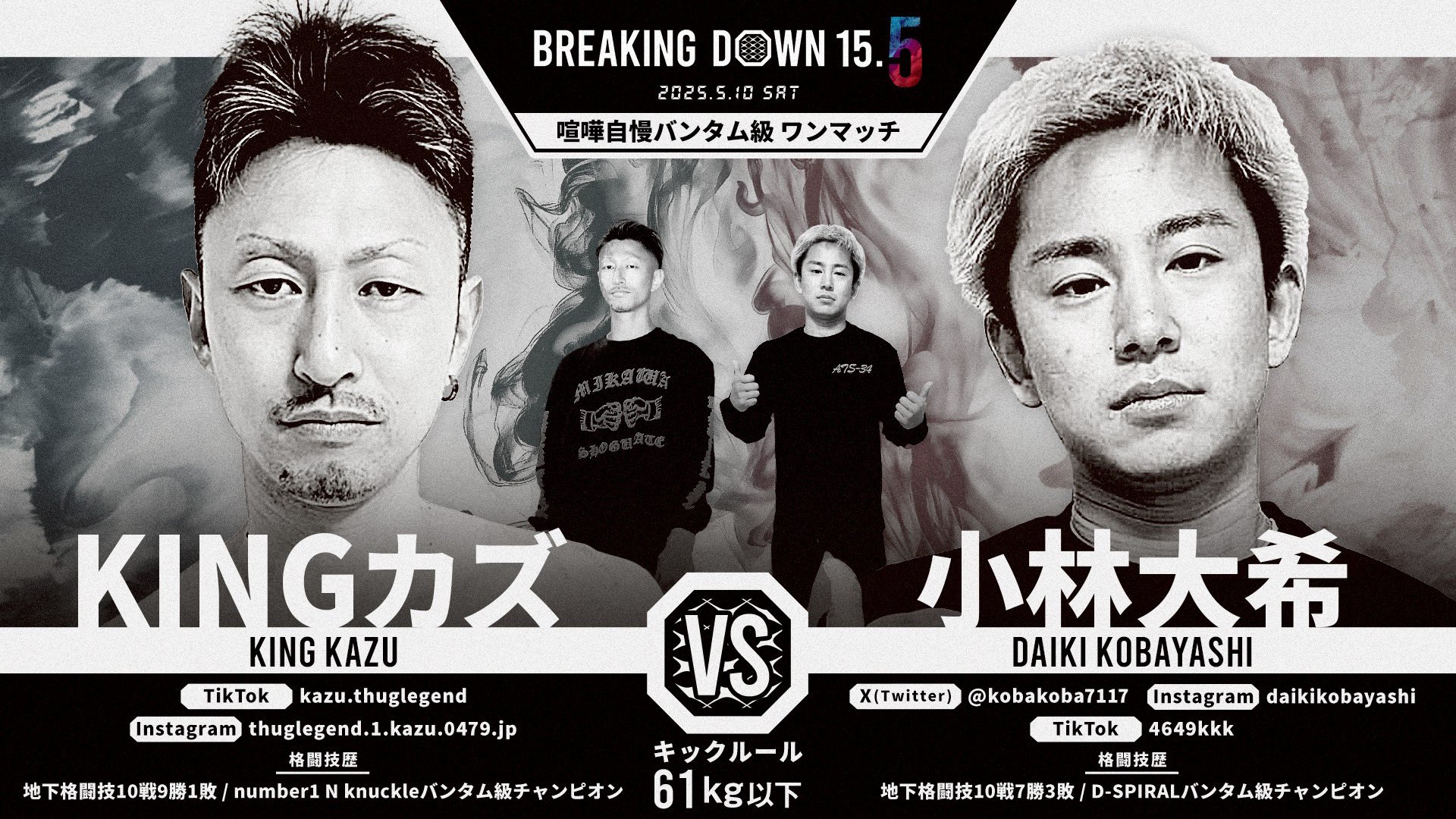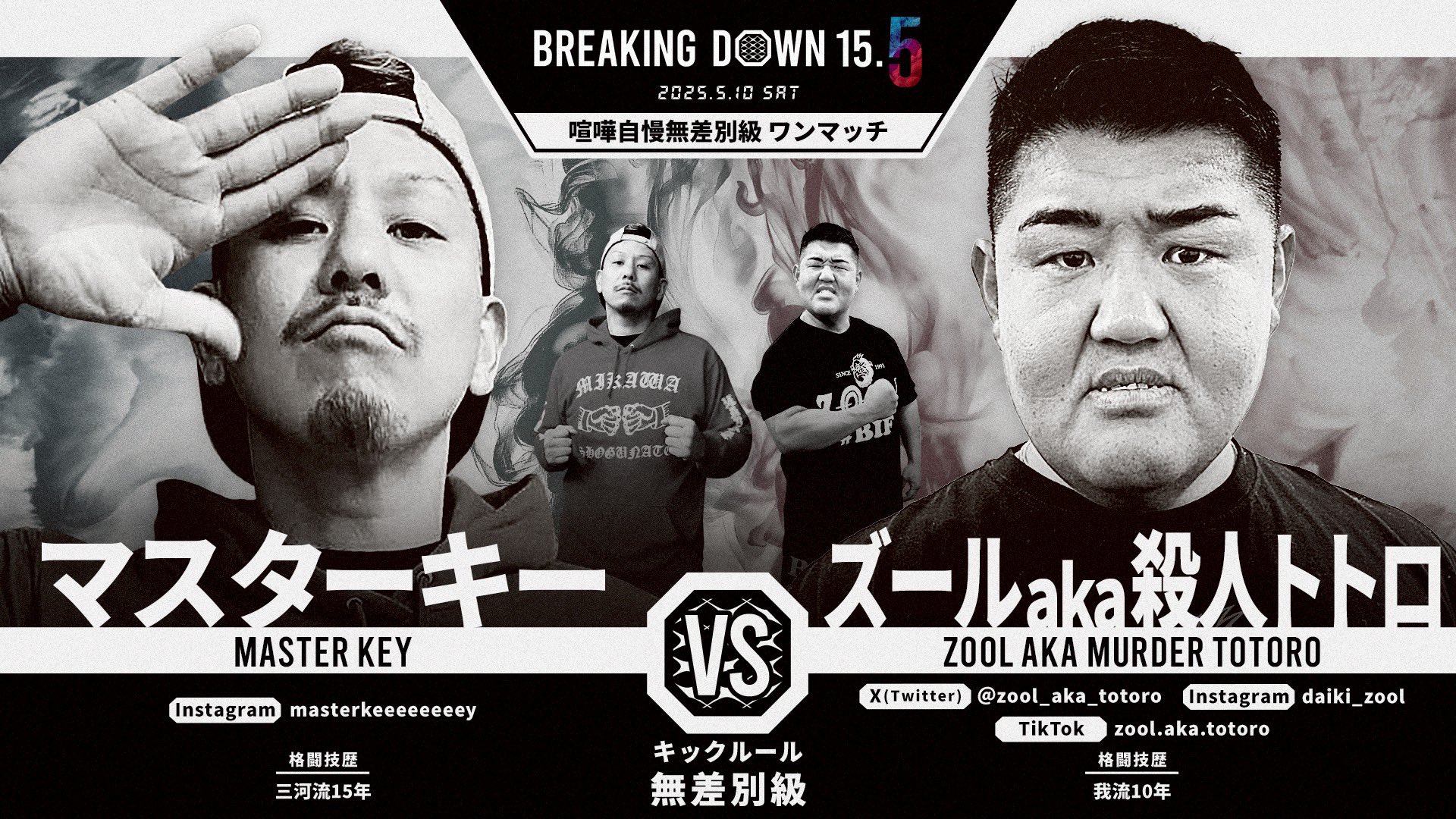 話題沸騰の、1分間最強を決める格闘技大会「BreakingDown(ブレイキングダウン)」の第15回大会が終わり、「.5」シリーズである15.5の最新情報です。