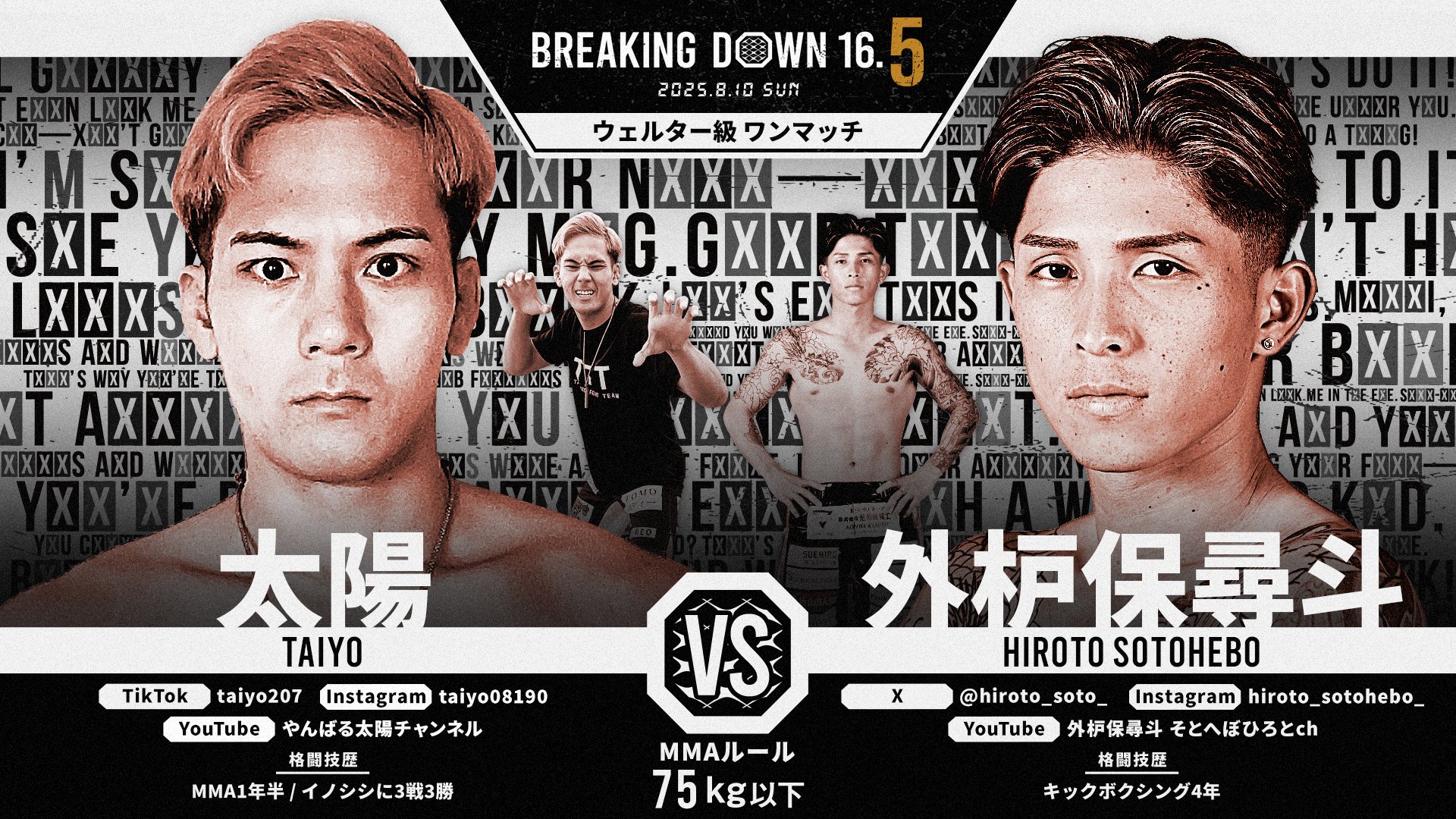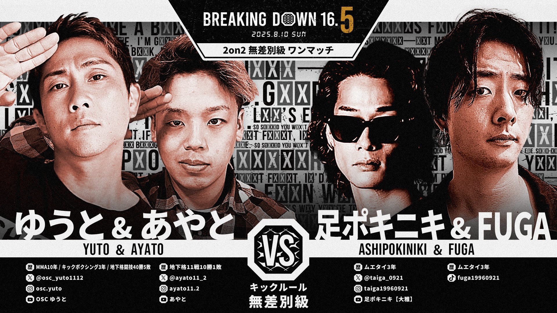 話題沸騰の、1分間最強を決める格闘技大会「BreakingDown(ブレイキングダウン)」の第16回大会が終わり、「.5」シリーズである16.5の最新情報です。