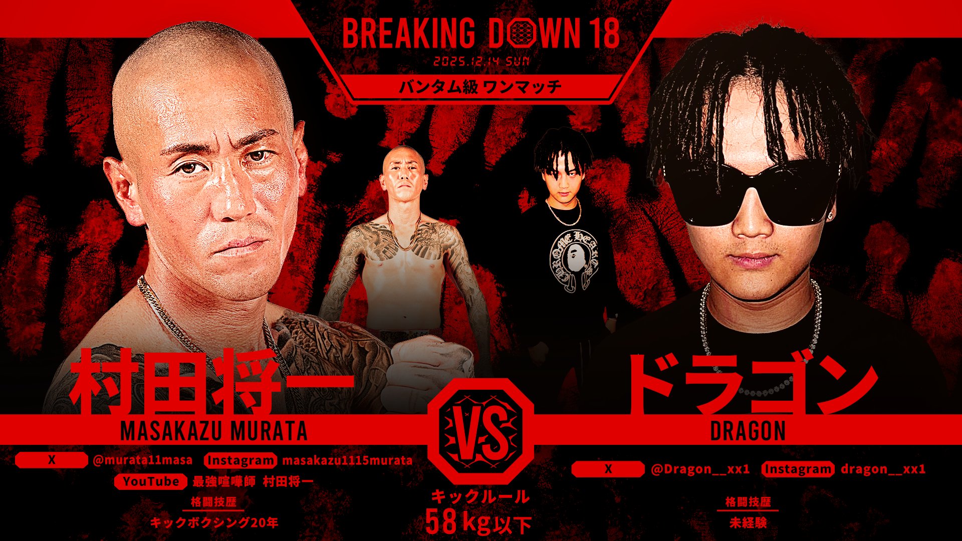 オーディションで存在感を示した両名の対戦。江口のフィジカルと一発の重さが武器ですが、竜も喧嘩自慢としての地力があります。技術よりも気持ちの強さが勝敗を分ける、BreakingDownらしい泥臭い試合になるでしょう。