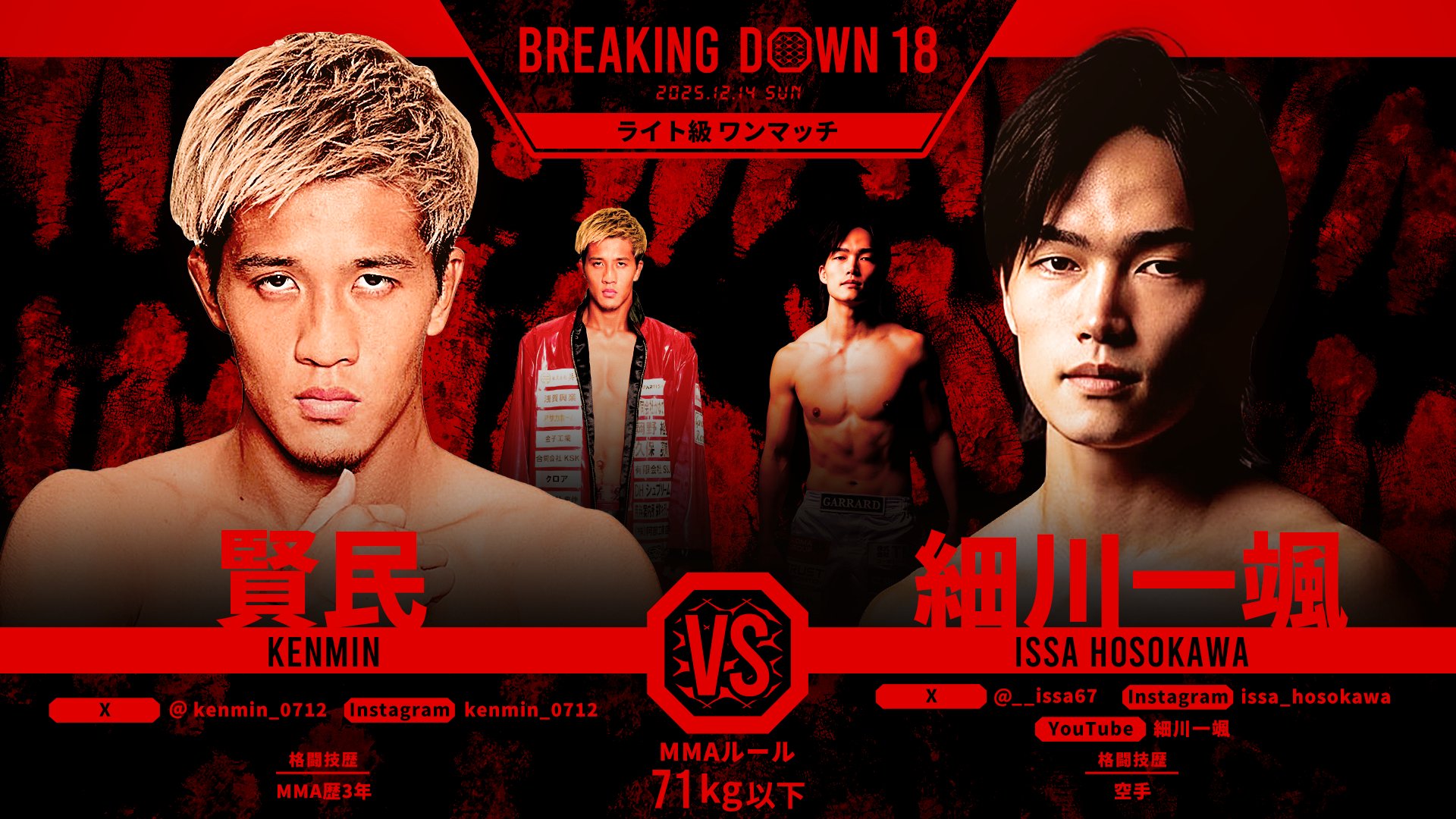 BreakingDown18(ブレイキングダウン18)の開催日は2025年12月14日と予定されています。