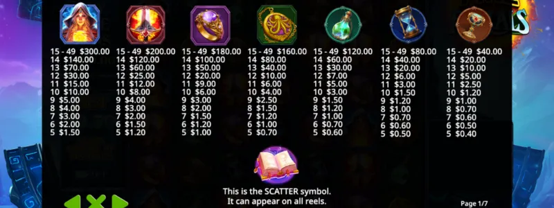 例えば、魔法使いは15個以上揃うとベット額の300倍の配当が得られます。